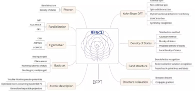 RESCU(Real space Electronic Structure CalcUlator),由于其新颖的算法和超高的并行效率,使其在大体系下有着很抢眼的表现,在使用相同资源及不牺牲精度的情况下能够计算更大体系的电子结构;同时RESCU适用于各类计算资源,从笔记本电脑、桌面单机、到16核、64核、256核、到更大的超算、包括用GPU加速等等,可以用来计算一千、数千、上万、乃至更大体系的电子结构性质。RESCU是解决超大体系KS-DFT问题的里程碑式的新方法,正在被应用于金属、半导体、绝缘体、液体、DNA、1维、2维、3维、表面、分子、磁性、非磁性、杂质、固体等等不同系统的KS-DFT计算。