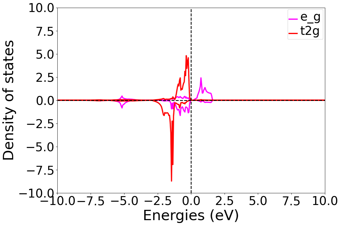 自洽和态密度计算完成之后,分析第2个Ni原子在进行DFT+U计算之后t2g和eg轨道态密度分布,得到的分布图如下所示: