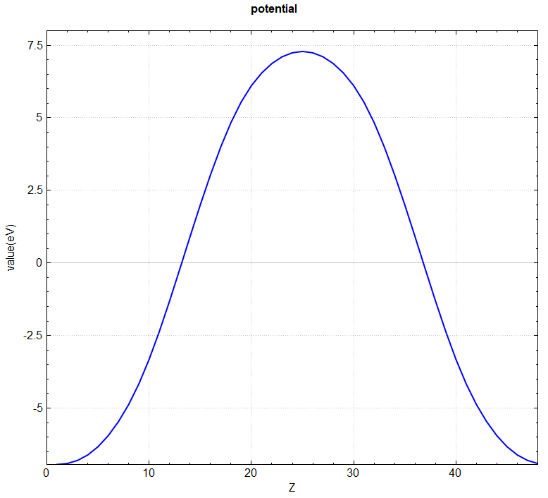 DS-PAW employs the steepest descent method for fixed-potential calculations, iteratively calculating the charge of the system for self-consistent field (SCF) calculations. The convergence process of multiple SCF calculations is written to the DS-PAW.log file. In this example, the convergence criterion is met at LOOP 5. The potential values of the system at the end of LOOP 5 are shown below: