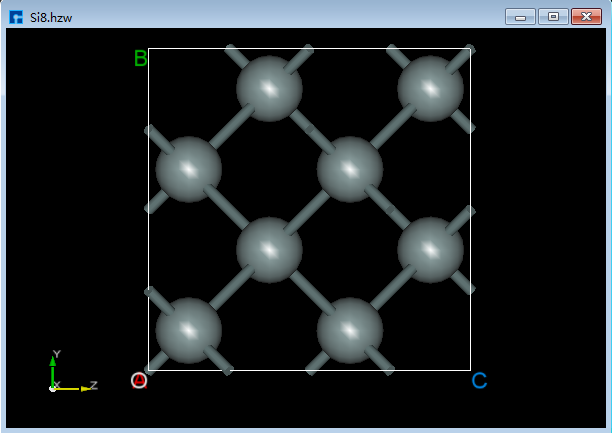 以Si8晶体结构为例描述结构的信息测量一系列操作。准备结构文件 Si8.hzw,鼠标拖动该文件到软件的Project Explorer(项目管理)区域即可导入结构,结构的zy面3D视图如图3-35所示。