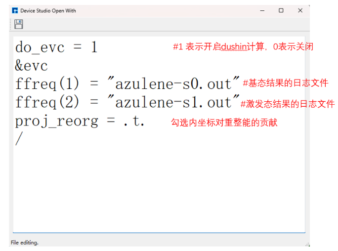 图 10.116 生成 基态分子CH2S完成sf-X2C/TDDFT-SOC的自旋轨道耦合计算 输入文件的Device Studio界面¶