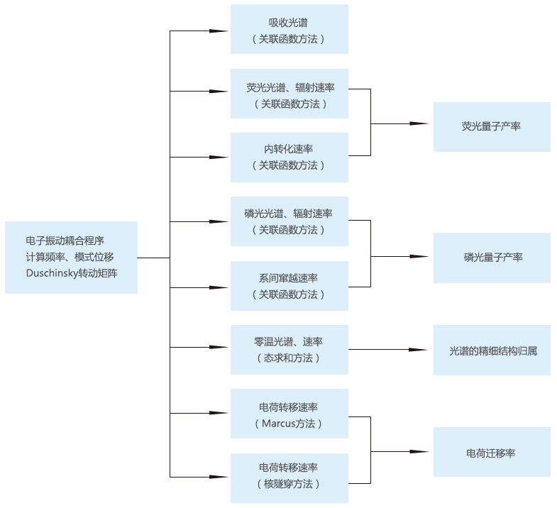 鉴于 BDF 的现状,首期商业化版本将以荧/磷光材料发光机理和材料设计为主要应用目标,因此不包括4C/X2C相对论、波函数电子相关、固体能带/核磁等方法。即首期商业化的BDF将以DFT、TDDFT为主,包括基态与激发态KS、QM/MM、FLMO-TDDFT、SF-TDDFT、NAC-TDDFT、sf-X2C-SA-TDDFT/SOC、SA-TDDFT解析能量梯度和数值Hessian、稳定结构和过渡态优化、反应路径优化、隐式溶剂化模型、FLMO-NMR、基于局域轨道(FLMO)的性质计算和分析等特色功能。
