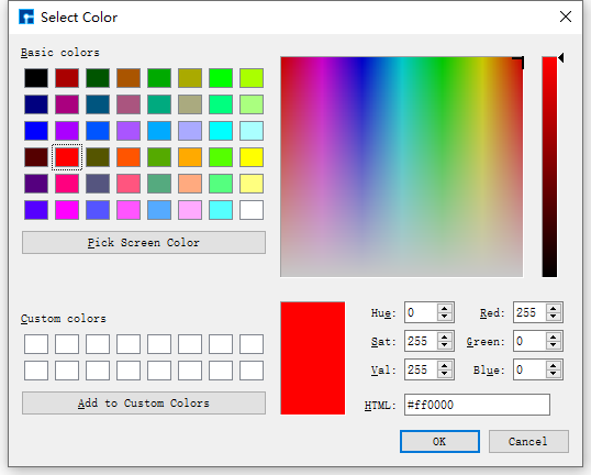 O43原子)的颜色。点击 Color 后的颜色按钮 → 弹出Select Color界面如 图 7.12 所示 → 选择颜色或填写RGB值 → 点击 OK 按钮,即可修改O43原子颜色;Radius :显示选中原子(如: