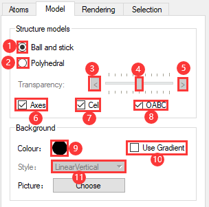 原子结构精修模块的背景颜色主要通过 SRM-参数调节区域-Model区域 修改,用户可详细阅读该节内容了解详情。
