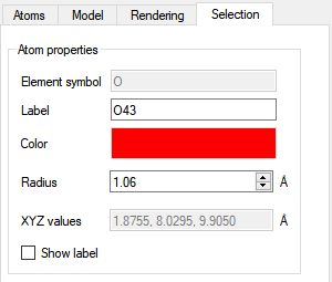 O43原子)的半径,支持编辑修改;XYZ values :显示选中原子(如: